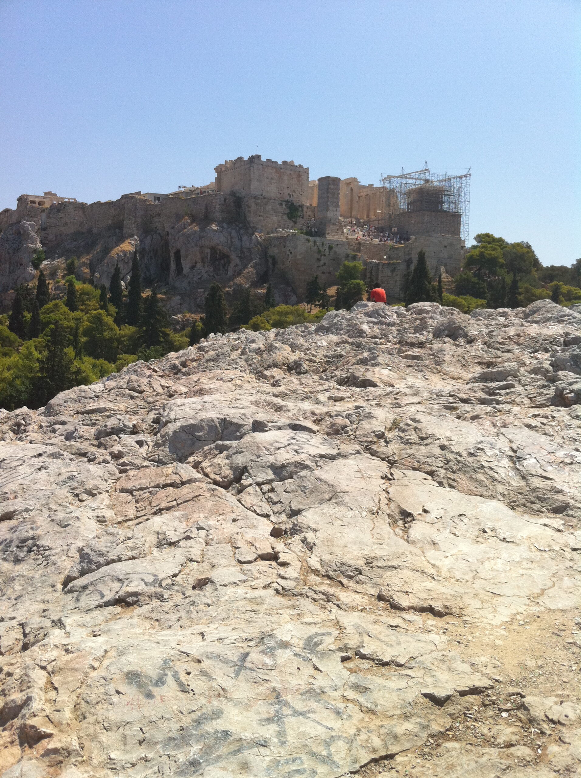 I took a picture looking up to the Parthenon from the top of the Areopagus so you could get the idea of the view the justices would have had while Paul was saying these things about their pagan religion. This is the sort of thing you realize when you see a place instead of just read about it. It’s a great reason to travel.