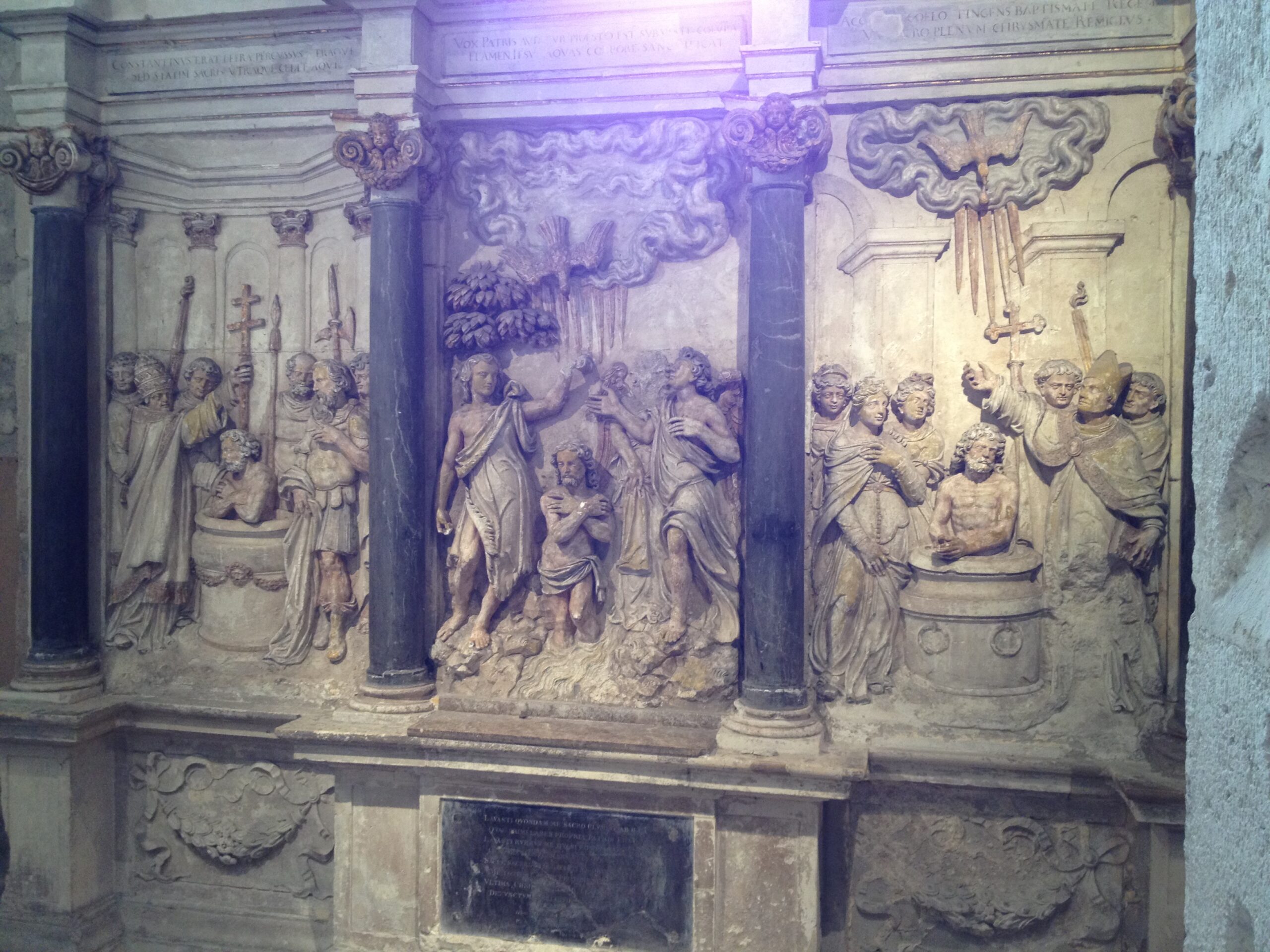 With the conversion of Clovis, the destiny of France was forever changed. Without Clovis one wonders whether there would have been a Charlemagne, or a Carolingian Renaissance or empire. A marble relief in the the Abbey of Saint Remi depicting the baptism of Jesus, Constantine and Clovis gives some hint to the importance of the conversion of Clovis (see picture).