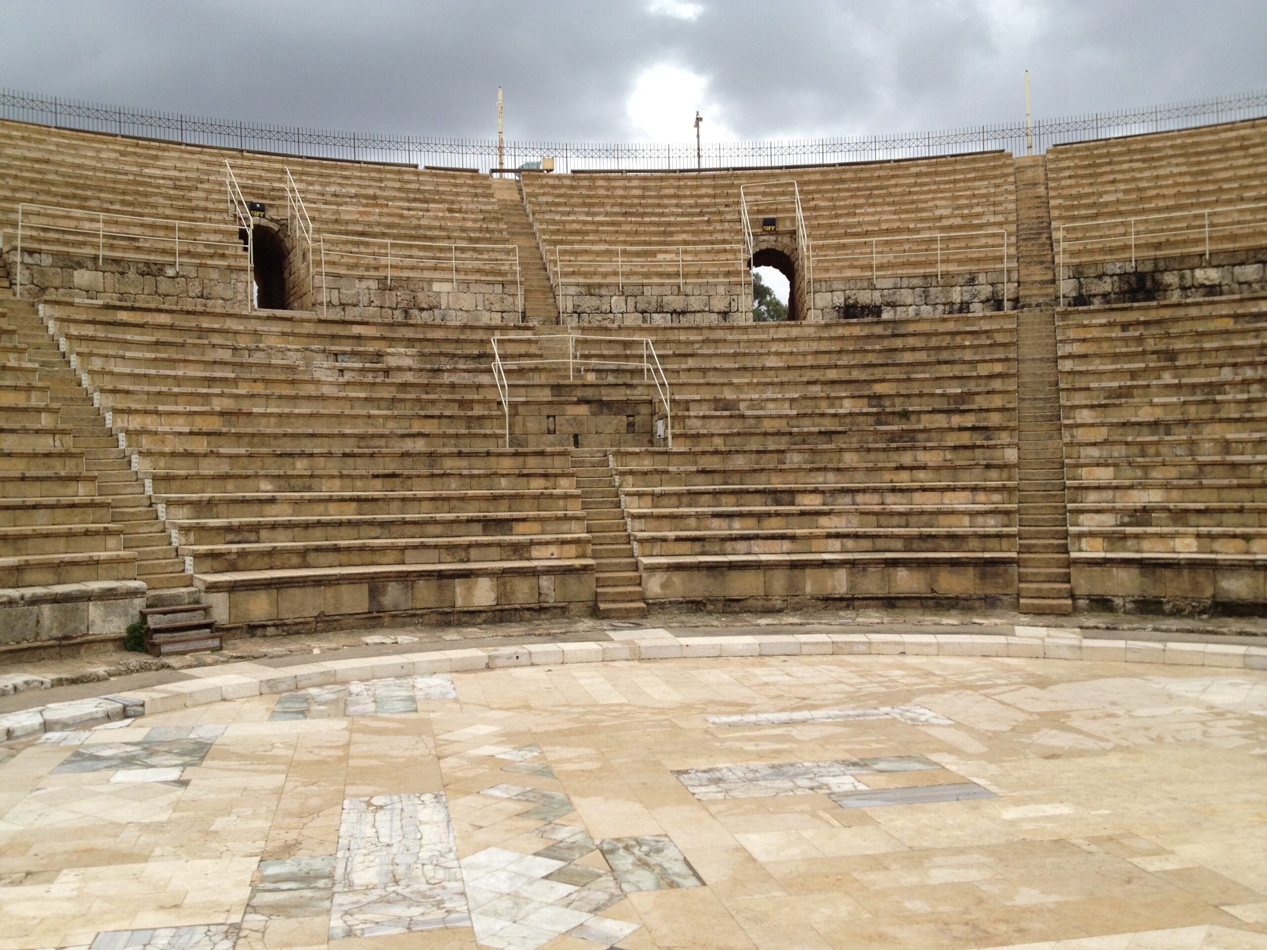 The weather was terrible today, but we still managed to visit Caesarea (Acts 25-26) and Mount Carmel. I took the picture you see at the left while standing in the very place the Apostle Paul stood when he made his defense to Agrippa and Festus.