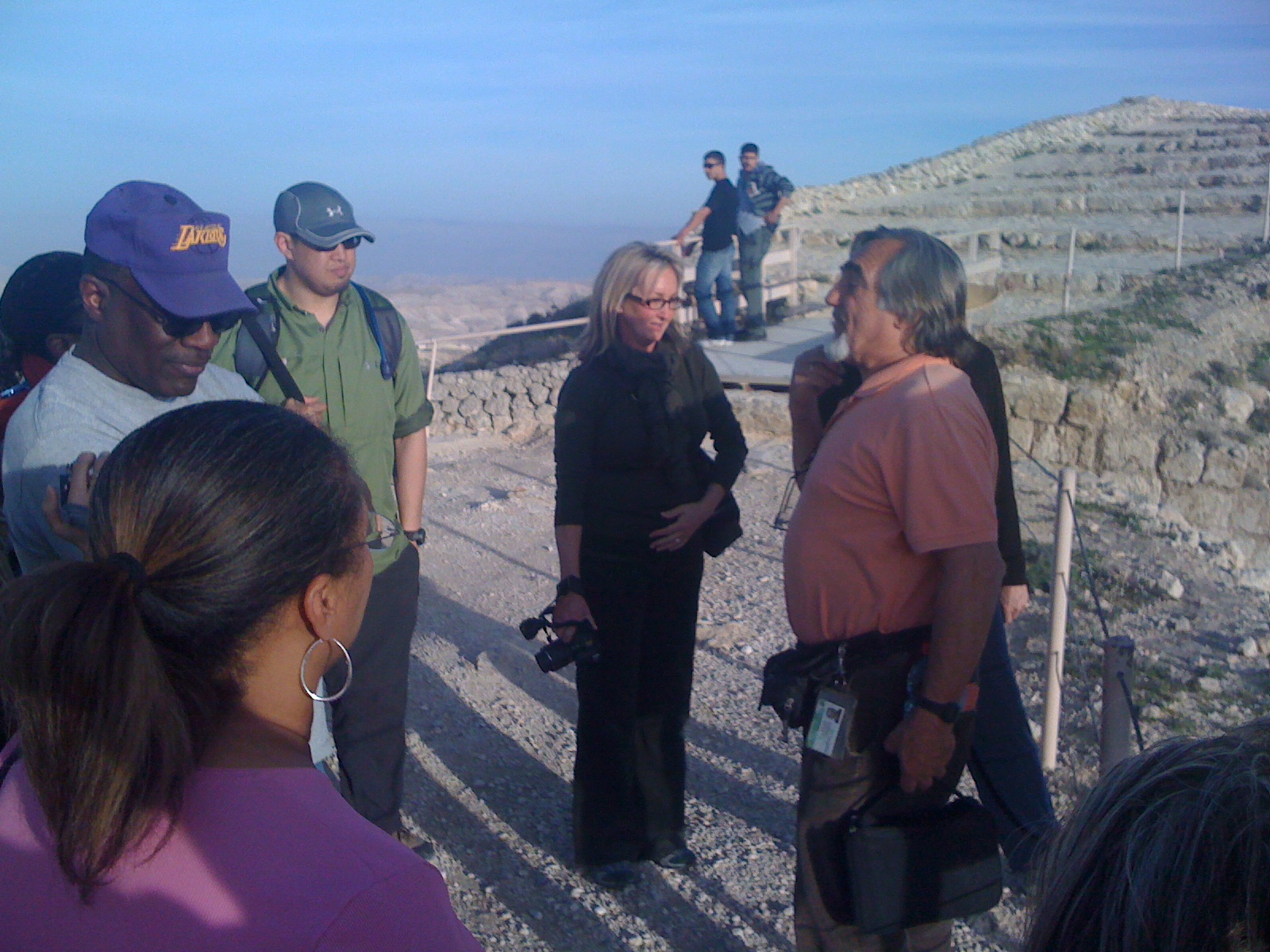 On top of the mountain, Arie gave us a teaching from Amos made more vivid from Arie’s extensive knowledge of the Jewish culture and our perch on top this man-made mountain.