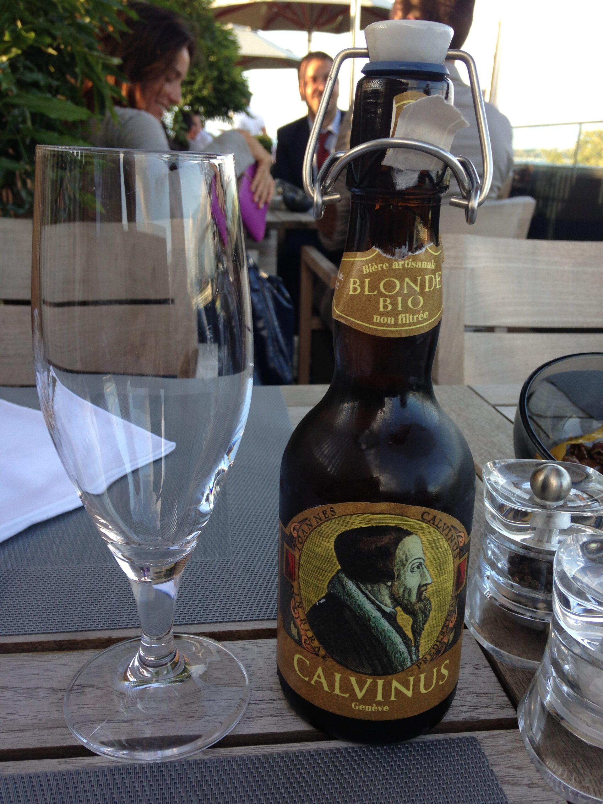 One thing I didn’t mention was that Geneva is home to Calvinus beer, just as Godfrey de Boullon’s castle in Belgium boasted a Godfrey brew, a fact I failed to mention in a previous travel journal. Obviously, I had to sample a bottle of Calvinus.