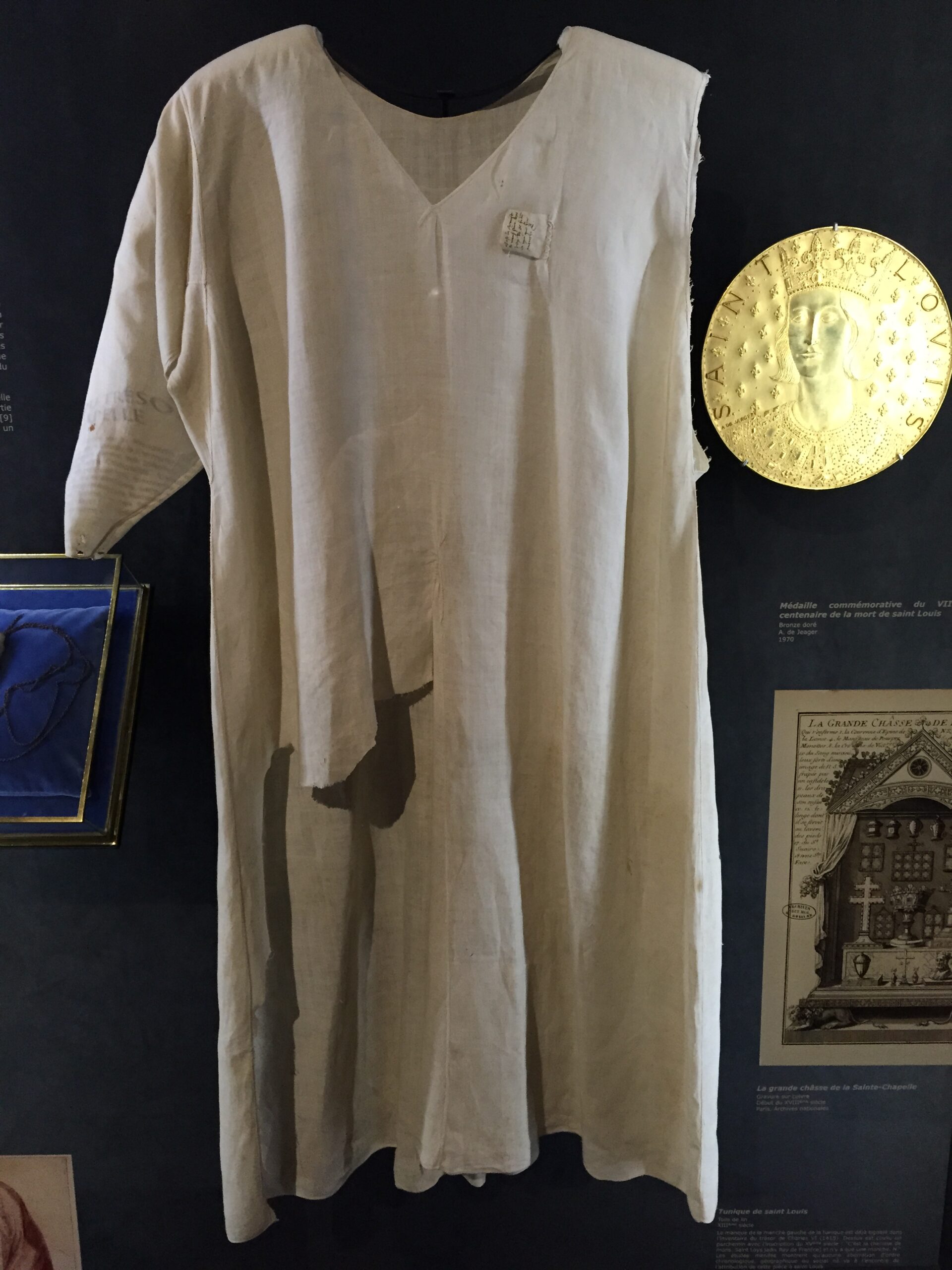 I went back to Notre Dame Cathedral because I remembered St. Louis’s tunic was on a display there. If you visit Notre Dame it is easy to miss. It’s in a section down a hall to the right of the sanctuary in a small museum of artifacts.