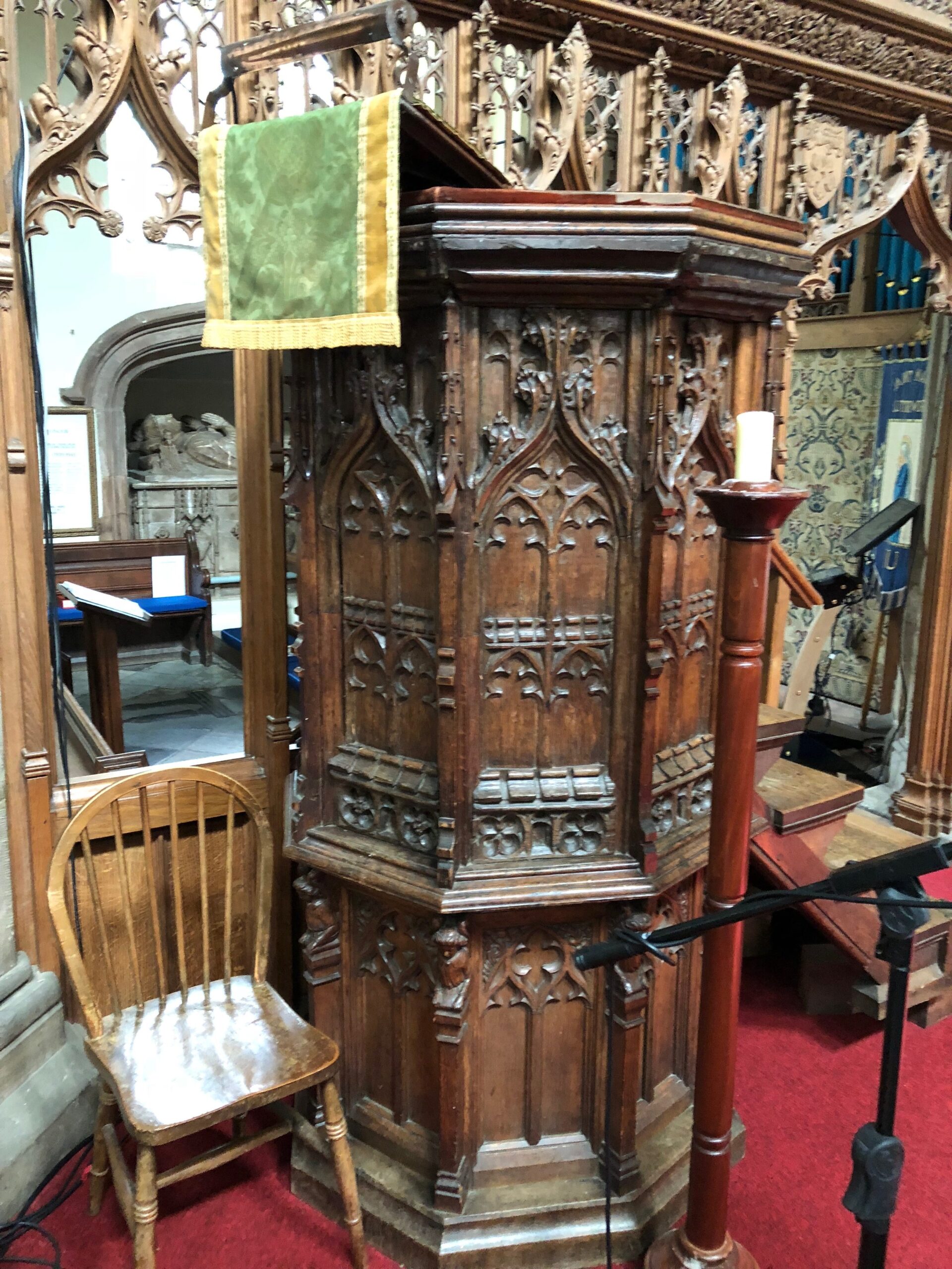 What was found inside was amazing: Wycliffe’s 600 year-old pulpit, his chair, the baptismal font he had used, and a facsimile of his English translation of the Bible. Mrs. H pointed out that interspersed amongst this priceless artifacts was modern furniture used for their current congregation’s children-church, and adult church services. Perfect; not a museum but a living, breathing, functioning church.